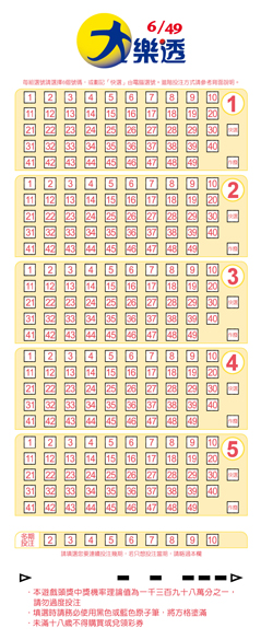 注意事項:彩券銷售後如遇有加開期數之情況,預購及多期投注之期數將順延。若彩券上的資料和電腦紀錄的資料不同,以電腦紀錄資料為準。